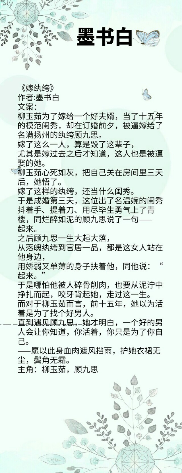 盘点!墨书白8部作品合集:《嫁纨绔》《长嫂为妻》《四嫁》超赞