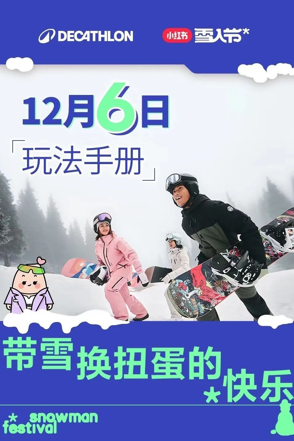 商户迪卡侬践行低碳环保理念,对运动装备进行回收和售卖让旧物焕启新生。12月6日至20日,迪卡侬携手小红书推出“雪人节”活动,携带和“雪”有关的物品,到店参与互动即可免费抽扭蛋。