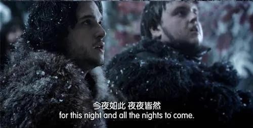 我将生命与荣耀献给守夜人,今夜如此,夜夜皆然。