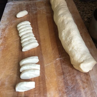 3、将面团和成均匀的圆柱形,切成均匀的小块儿。