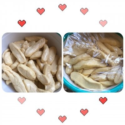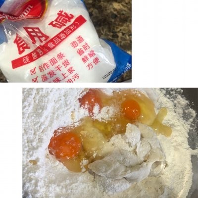 老面团: 中筋面粉 500克干酵母 5克水 280克主面团: 老面团 250克中筋面粉 1000克盐 9克食用碱 1克玉米油 25克鸡蛋 3个开水 550克