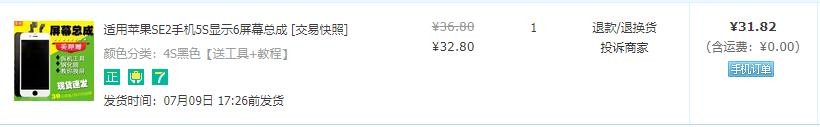 裸奔的机子,现在拿在手里还是非常有质感,圆润,单手掌控,开机之后,就是屏幕不亮,也无法解锁,连上电脑也是有反应的,但是有锁屏密码,也进不了手机,爱思助手刷了几次机也都失败,基本可以断定是屏幕和触摸硬件坏了,要全部更换。于是花了不到32元,从网上买了个屏幕总成打算自己动手更换一个新屏幕。