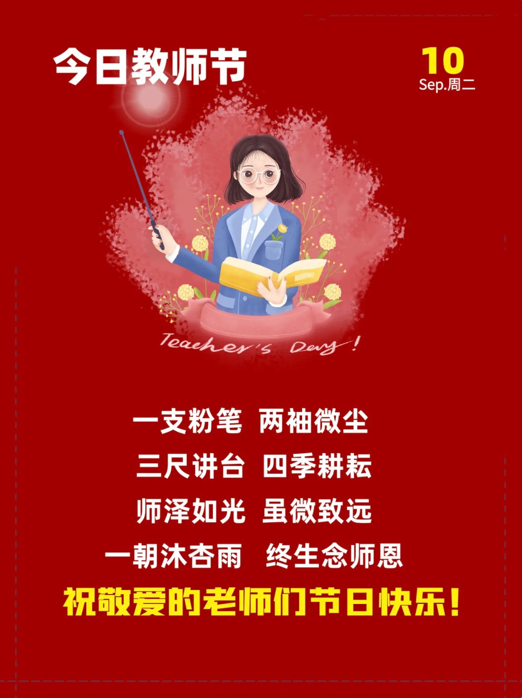 在今天这个美好的教师节,为我的张老师,为全天下所有的老师们送上节气最真挚的祝福,祝教师节节日快乐!
