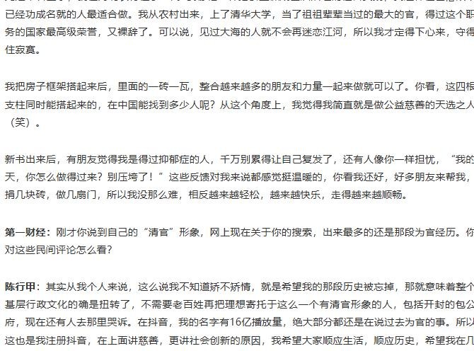 “火力全开”的发言后,陈行甲火了。人们记住的不只是他的犀利言辞,还有他过往的清廉实绩。