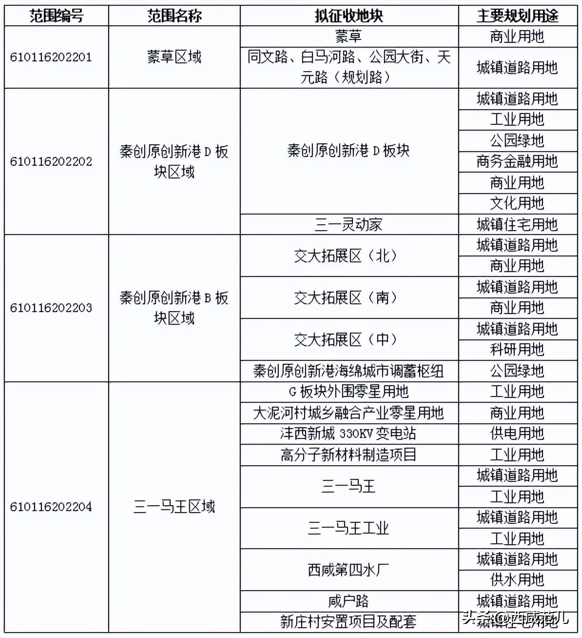 此前,沣西新城官网发布关于《西咸新区沣西新城2022年土地征收成片开发方案》(征求意见稿)的公示,内容涵盖《西咸新区沣西新城2022年长安片区土地征收成片开发方案(征求意见稿)》、《西咸新区沣西新城2022年鄠邑片区土地征收成片开发方案(征求意见稿)》、《西咸新区沣西新城2022年秦都片区土地征收成片开发方案(征求意见稿)》。共涉及长安、鄠邑、秦都三大片区约14507亩土地,其中涉及征收土地约11876亩,征收区域14个。