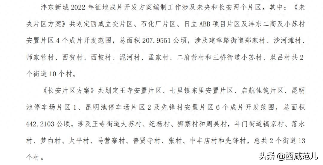 沣东新城2022年征地成片开发方案涉及未央区和长安区,共计10个片区23个村子。
