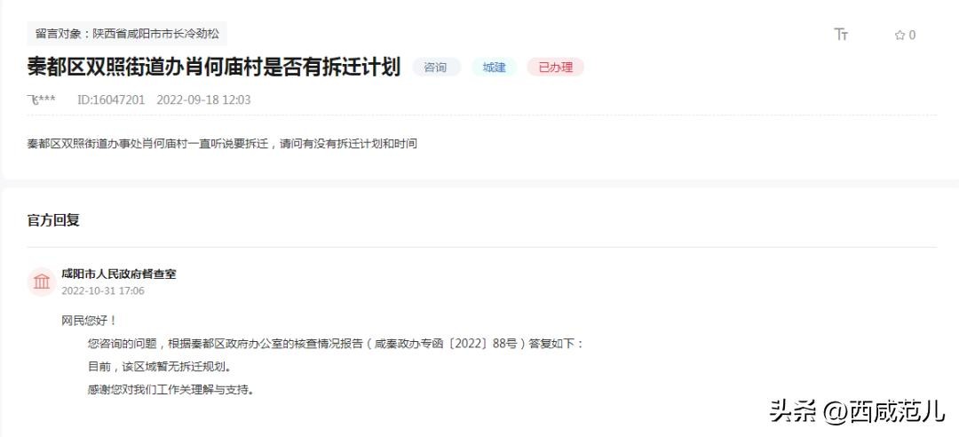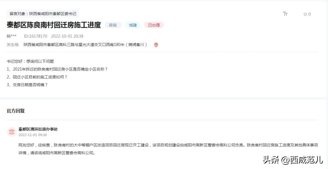来源:西咸范儿整理自西咸新区公共资源局、人民网留言板、沣西新城官网等