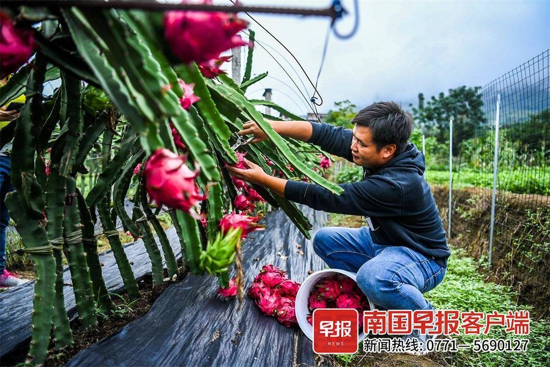 桂林市平乐县同安镇的果农在采摘火龙果。 资料图