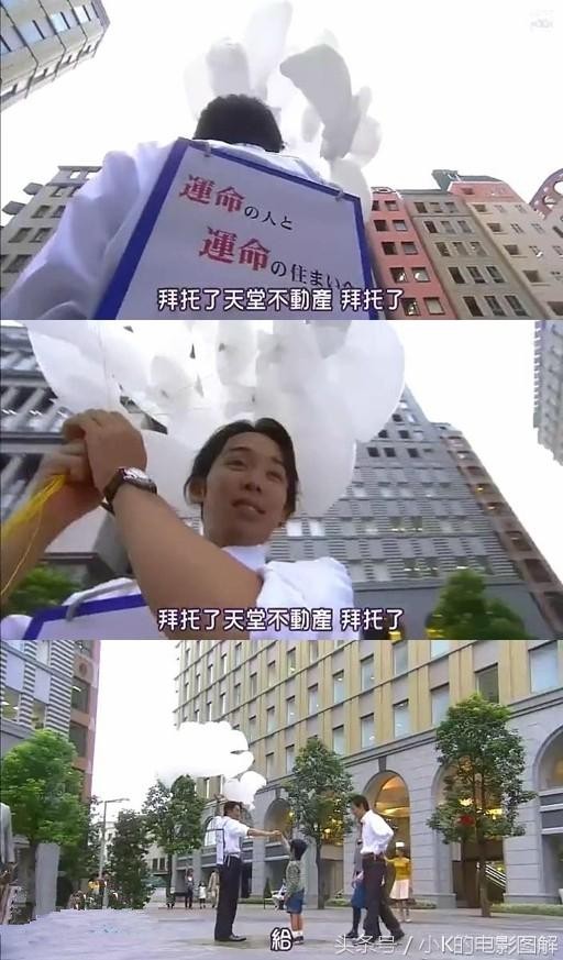 某天 街上一个白衣男正在派送气球 宣传不动产 这男人不就是~~~看来上帝是无情的 最后还是把好心天使打回了人形
