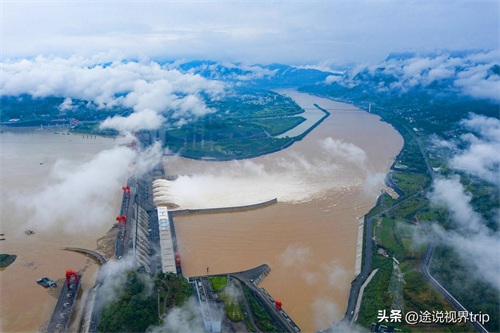 位于湖北省宜昌市境内,是当今世界最大的水利发电工程和清洁能源基地。大坝全长约3335米,坝高185米,混凝土总方量为1610万立方米,蓄水高程175米,装机容量达到2240万千瓦。1994年12月正式动工修建,2003年6月开始蓄水发电,多项指标世界第一。