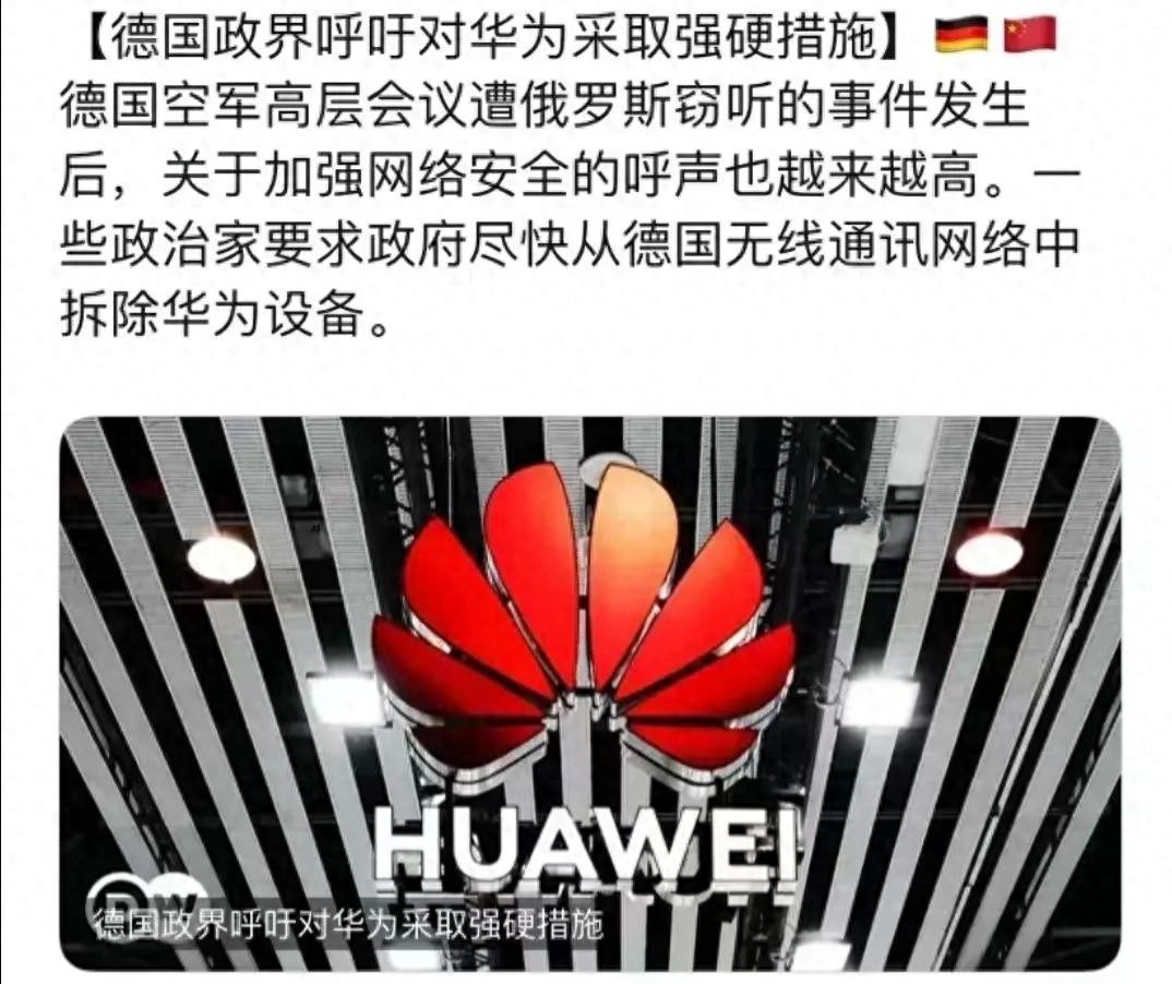 这次事件的导火索是德国空军高层会议的通话被俄罗斯窃听。在这个数字化时代,网络安全问题日益突出,德国政府自然也是紧张得不行。于是,一些政治家就开始找起了“替罪羊”,而华为就成了他们的靶子。