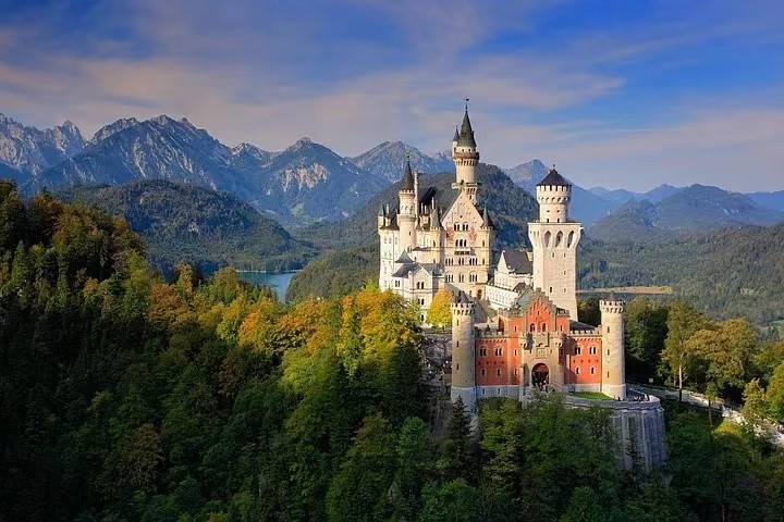 新天鹅堡位于德国巴伐利亚,始建于1869年,是迪士尼睡美人城堡的原型。每年9月,在城堡歌剧大厅会举行为期一周的宫廷音乐会。内部参观结束后,可以去城堡后方的玛丽安铁桥观赏天鹅堡全景。