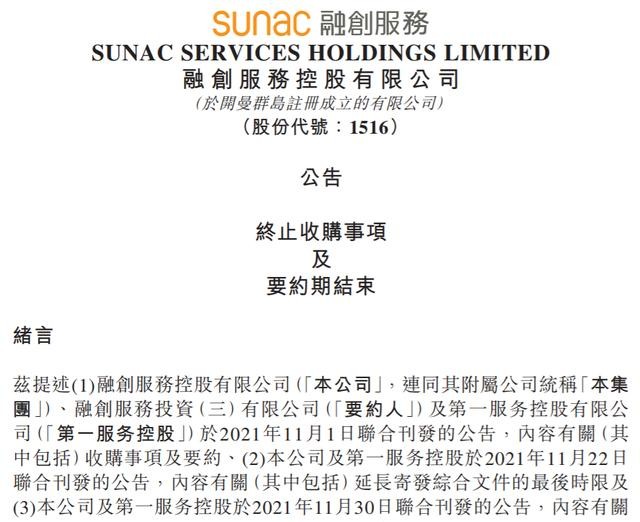 早前,在1月3日,融创服务和第一服务却均对外发布公告称,此次关于第一服务控股股东32.22%股权转让框架协议已自动终止。也就是说,当代置业失去了一次补血机会。