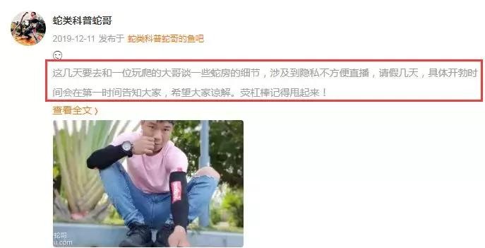 前段时间户外主播蛇哥宣布停播后曾引起不少人讨论,当时他透露:这几天要去和一位玩爬的大哥谈一些蛇房的细节,涉及到隐私不方便直播。此时他的直播间处于“违规”状态,标题为:“临时处理事情,等我回来”!虽然文中蛇哥表示“请假几天”,但不料他这一休息就是整整40天!