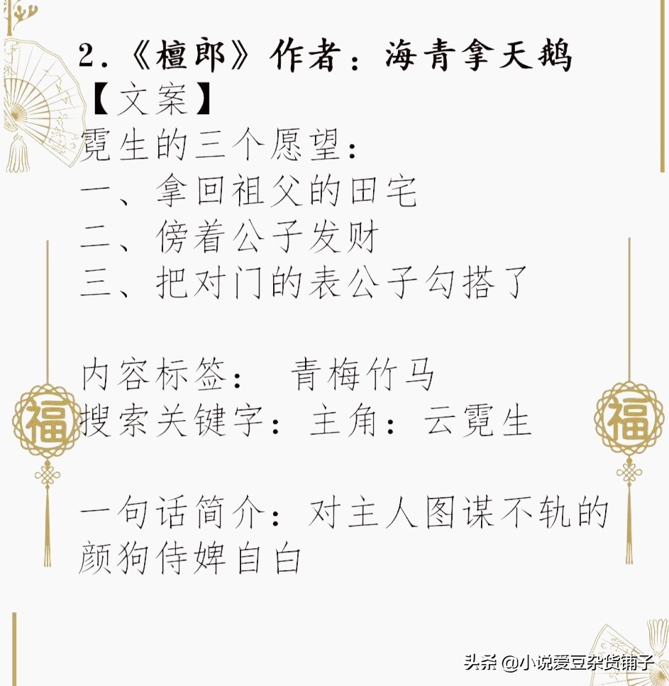 今天推四本少爷与丫鬟的小说,这种人设就很可。《我家二爷》知道的人应该很多人看过吧,t大的,小短文。雷点就是,男主是一个残疾,介意勿进!男主一开始是一个浪子,不求上进的纨绔子弟。后来经历过残疾之后,就浴火重生,变成了一个成功的商人。女主是一个长相平平常常的丫鬟,我感觉这种还是挺难得的,毕竟在小说里面,不是帅哥就是美女。女主一直对男主忠心耿耿,在男主最难的时候,也不离不弃。喜欢的朋友们不要错过哦!