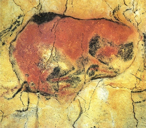 这些牛就是阿尔塔米拉洞窟的壁画,阿尔塔米拉洞窟在西班牙北部,里面牛的壁画最起码有两三万年之久,因为壁画数量大,保存完好,被后人称赞为“史前的西斯廷教堂”,这个洞窟被发现揭秘了其实人类的祖先在万年前就开始那身边的石头开始涂涂画画了,万年前就有绘画的艺术了。