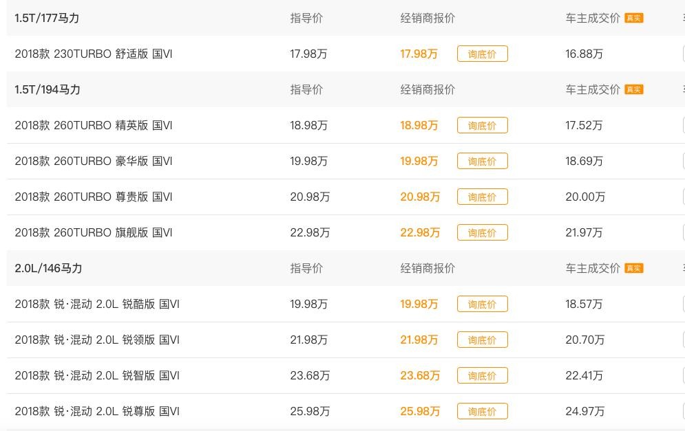 2018款雅阁:定位中型车,共9款车型,指导价17.98万-25.98万