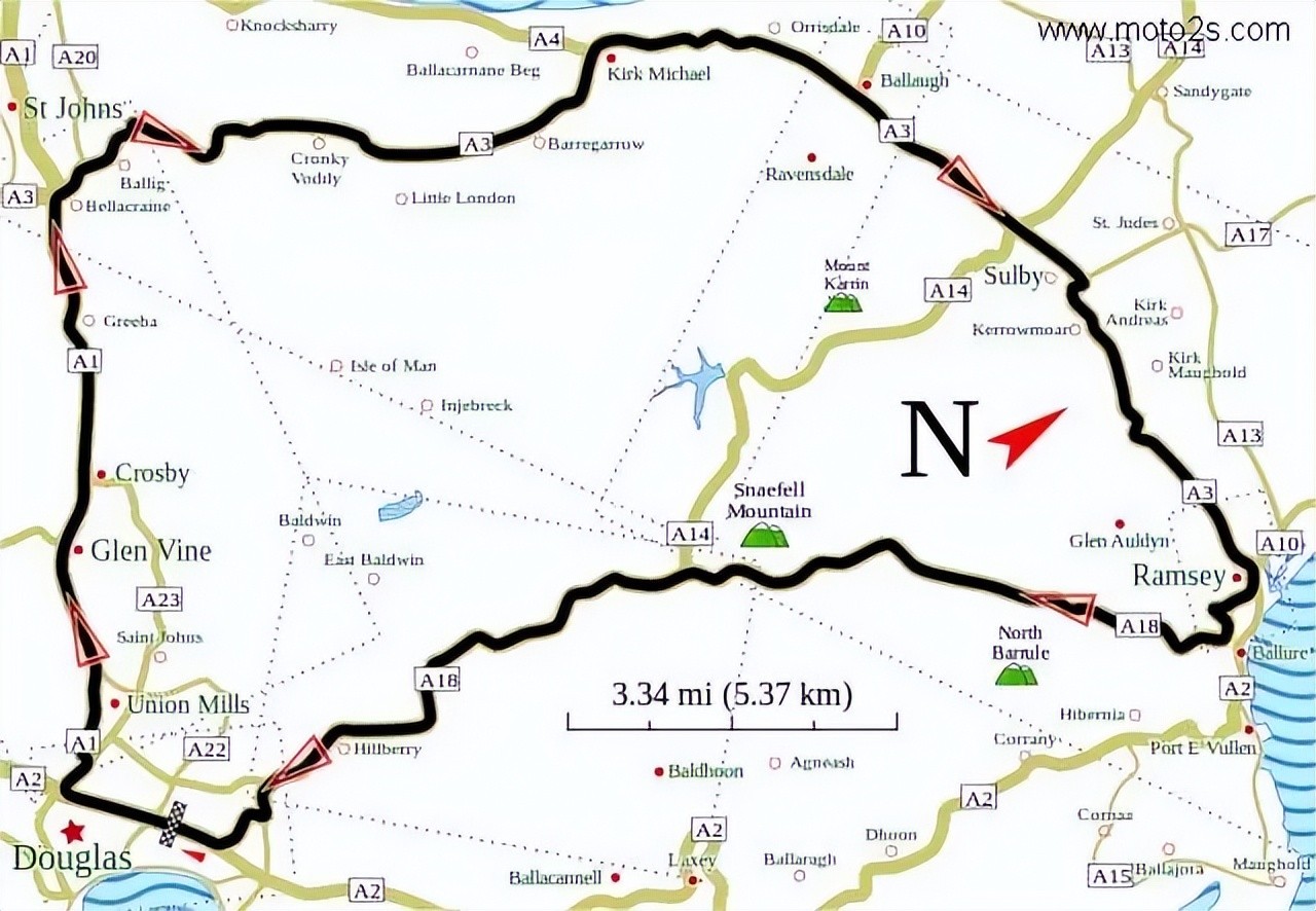 曼岛TT,全世界最危险的环岛摩托车比赛。每年的6月份会在曼岛举行,赛道就是围绕着岛外围的公路,全长60.7公里,弯道超过200个,跑一圈用时不到17分钟,相当于均速200Km/h