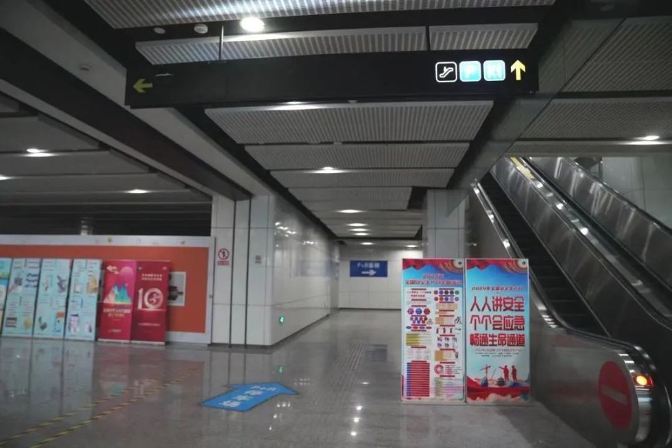 乘客梯抵达B1层,按引导标识指向,步行约3分钟即可抵达8号线芦恒路站安检口,全程约200米。