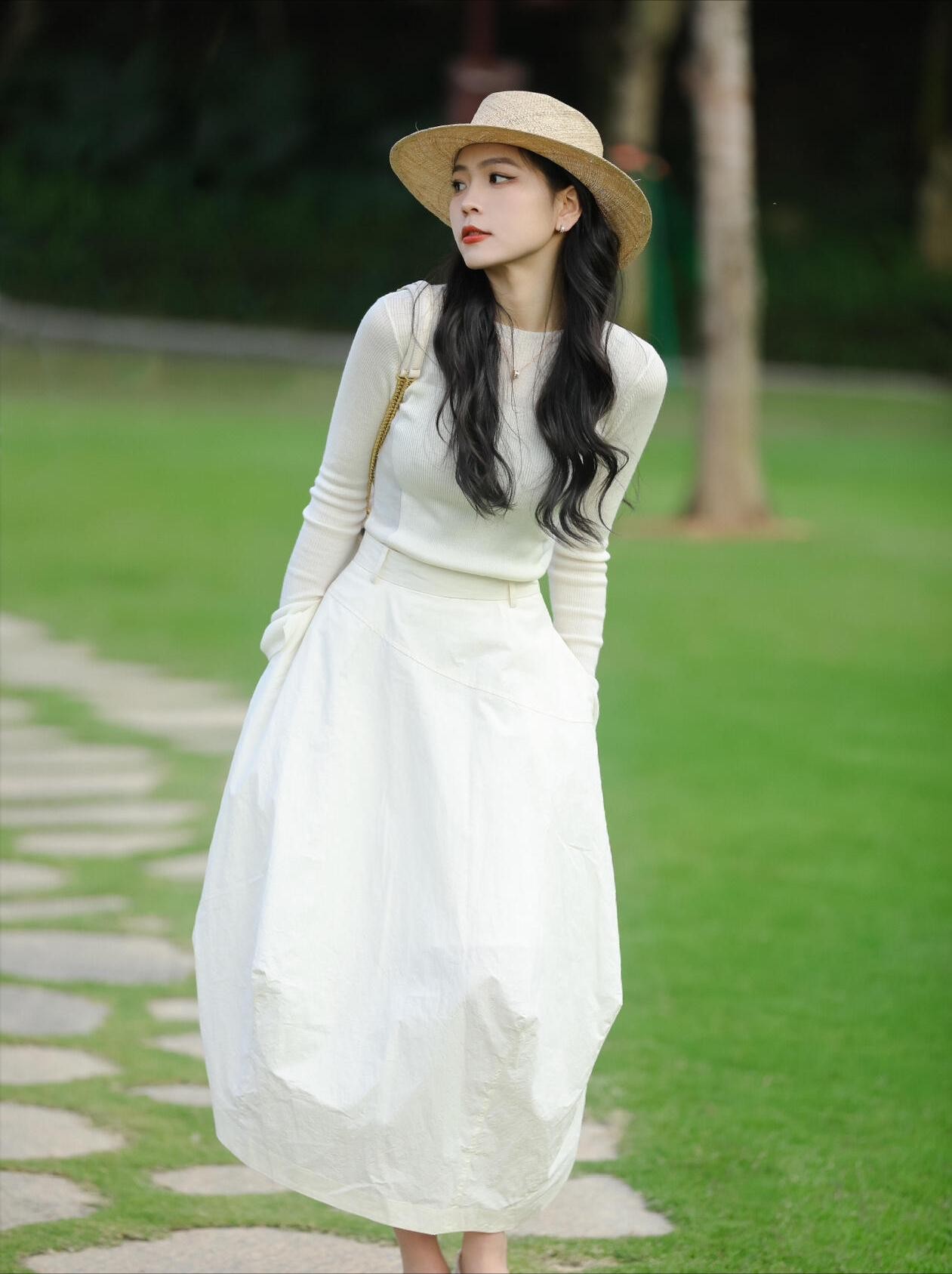 最后一个姿势非常适合展示你温柔的一面。抬起一只手轻轻放在胸前,身体微微歪斜,露出温柔的笑容,眼神看向别处。这个姿势非常适合草地拍照,能让你展现出柔美的气质,照片看起来自然又好看。