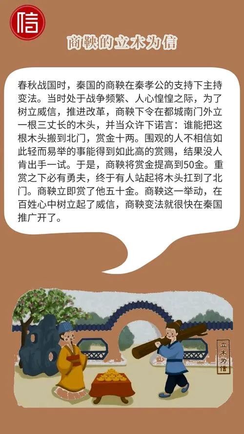 这个故事不仅展示了商鞅重视信用和法治的决心,也体现了他希望通过实际行动来赢得百姓的信任。
