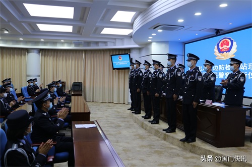 “祝贺 你们,从今天起正式成为一名光荣的 移民管理警察”。根据原公安边防部队改革部署和工作推进,8月13日上午,延吉出入境边防检查站举行现役士兵录用人民警察授予警衔仪式。站党委书记、政委朱勇同志出席并讲话,仪式由站党委副书记、站长赵东娟同志主持,全体民警参加了授衔仪式。