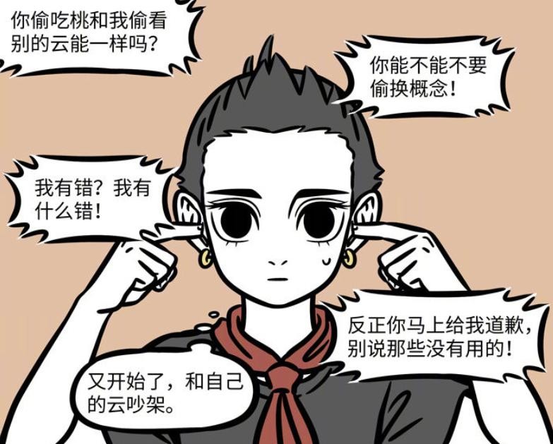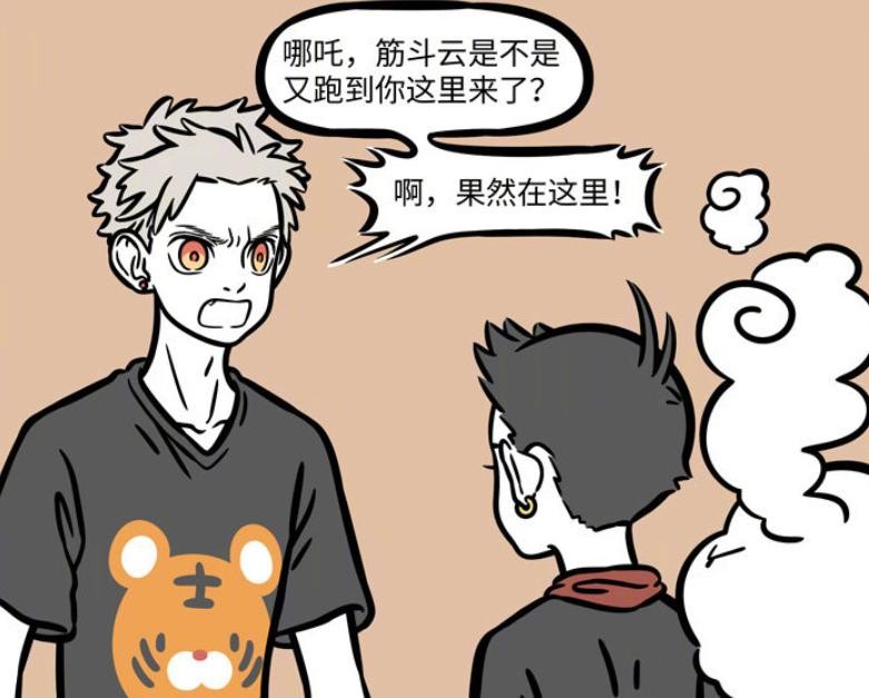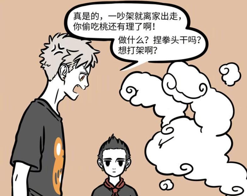 筋斗云只要跟孙悟空吵架,就会离家出走。不过这一次却是是筋斗云的问题,偷吃那么多桃子还承认,被发现后只能离家出走。另外筋斗云还是个不屈服的云,还想握着拳头跟孙悟空打架。这个过程哪吒就是个旁观者,又不能插手也说服不了他们。