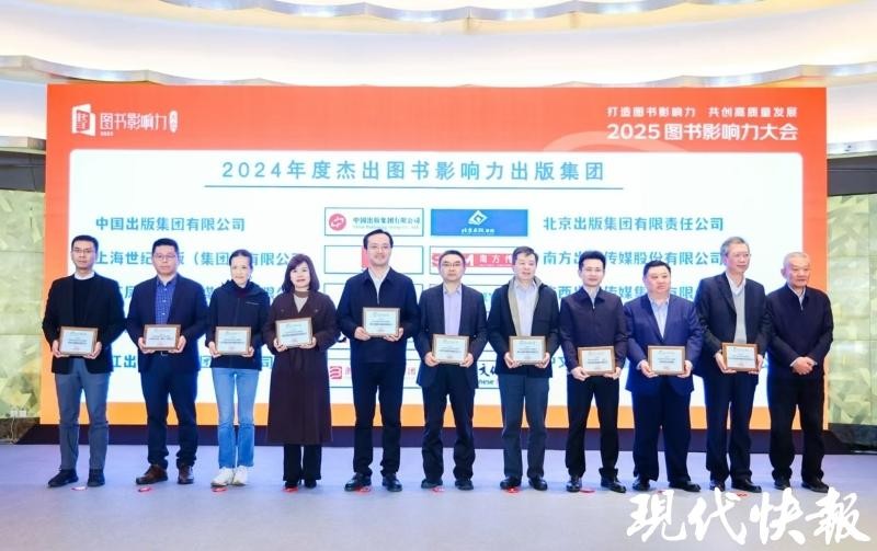 现代快报讯(记者 任雨风)1月8日下午,由北京图书订货会组委会、百道网联合主办的2025图书影响力大会在北京举行。江苏凤凰出版传媒集团有限公司获评“2024年度杰出图书影响力出版集团”。