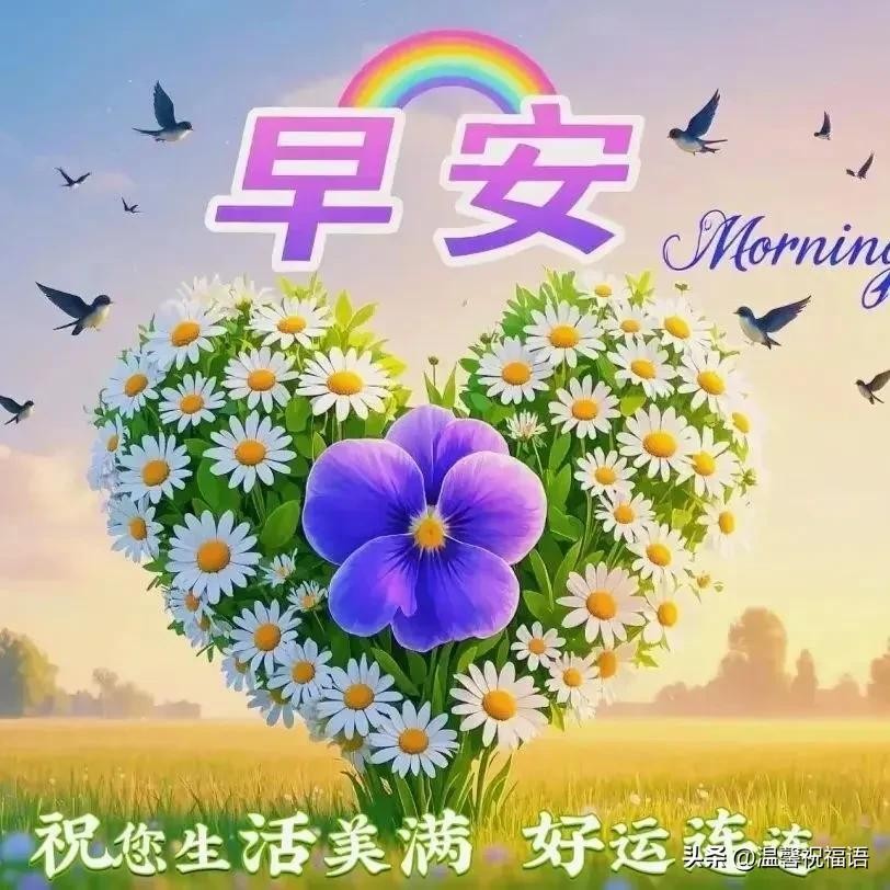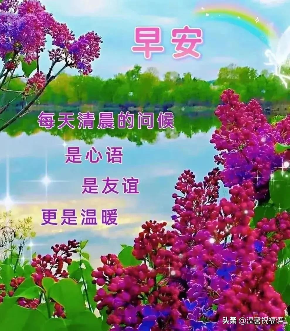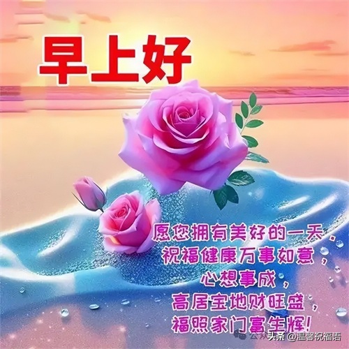 "早上好,温馨的清晨问候,祝你幸福美满,真挚的早安祝福,愿你笑容灿烂;平安和健康,守护你分分秒秒,快乐的生活,每天都顺心顺意!"