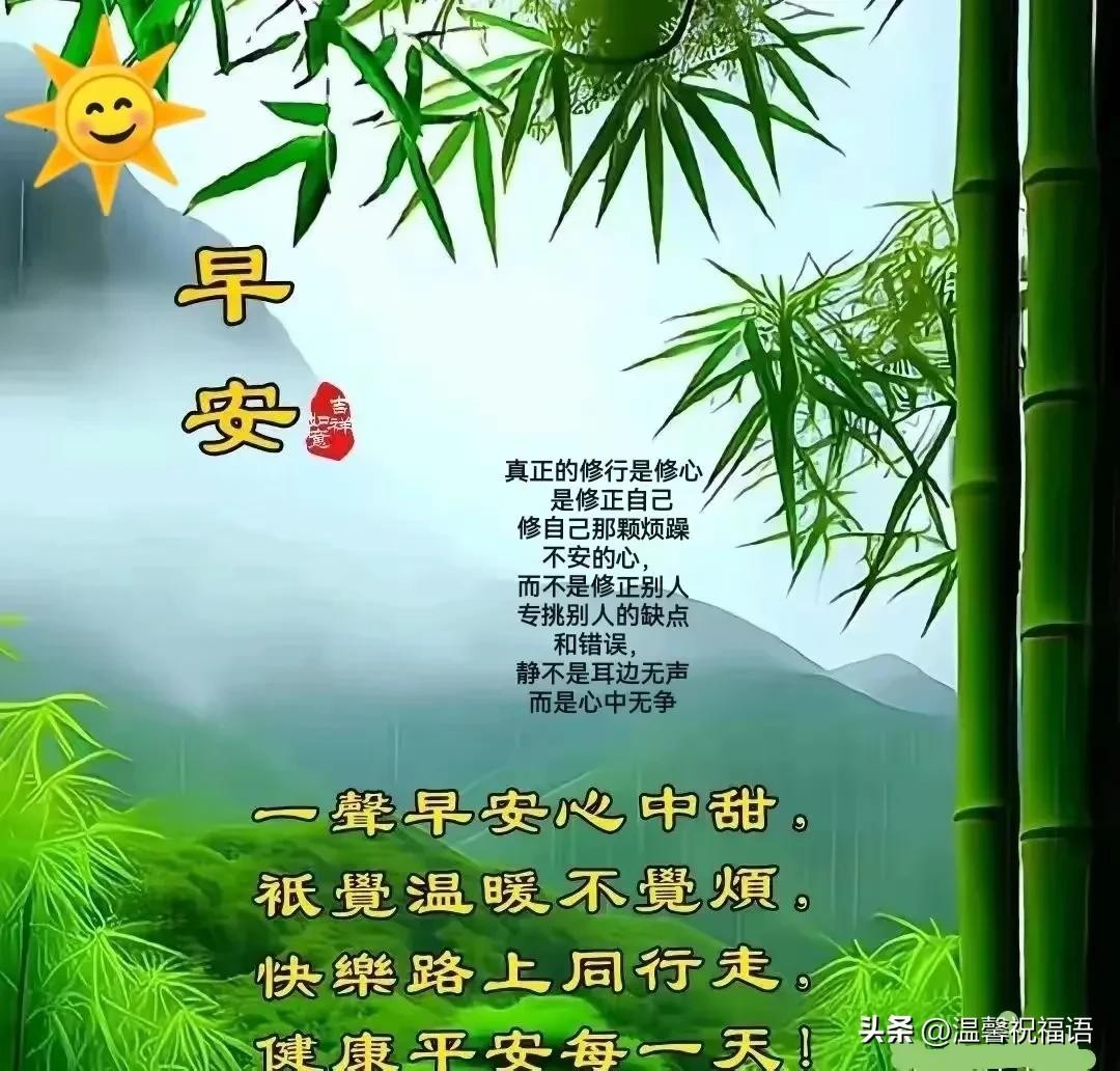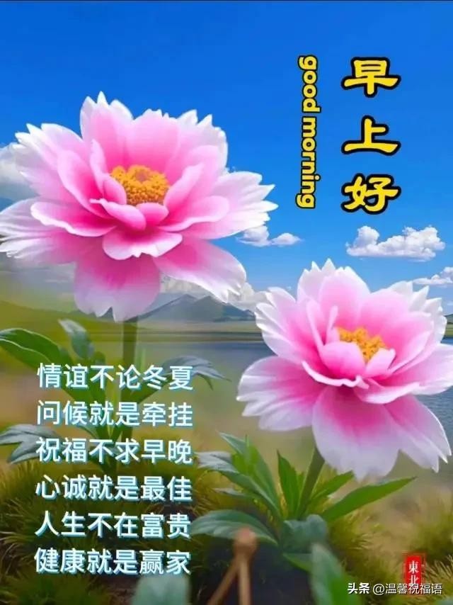 "山山、水水,成一画;早早、晚晚,皆牵挂;真心实意来问安,今生今世情无价。愿我们皆健康、快乐、幸福度时光,老同学,早安愉快!"