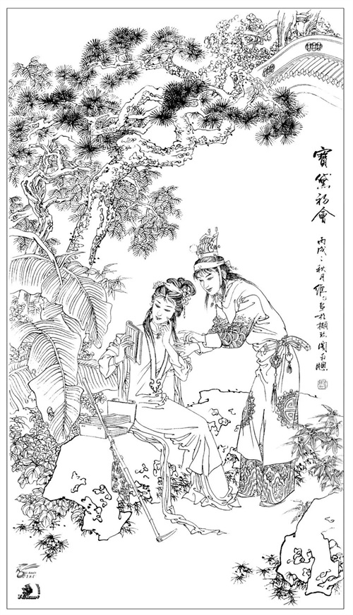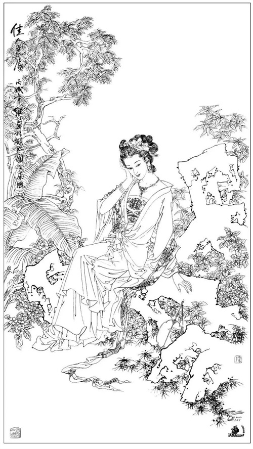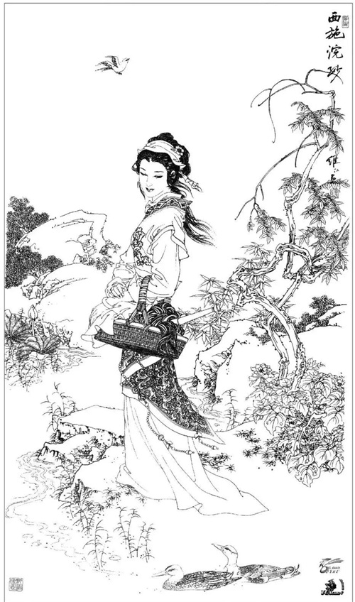 以上就是人物画白描作品,或者叫做白描画作品吧,白描线条的运用主要是在,工笔画里运用,今天我们欣赏的白描人物可以看出,线条也可以表现疏密空间的变化,通过疏密的线条表现来体现白描人物画的美。