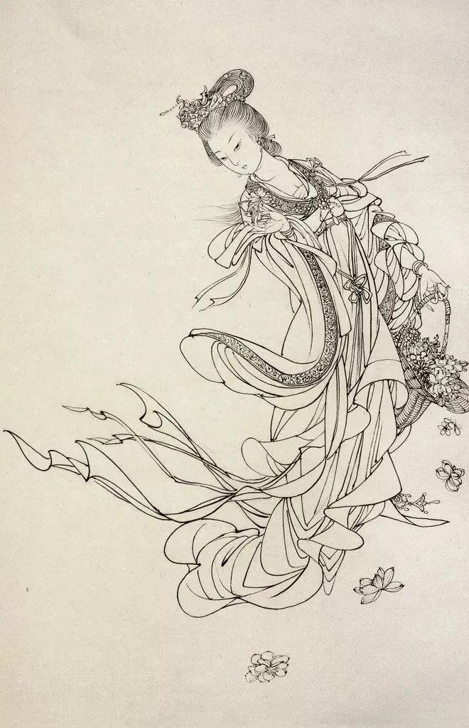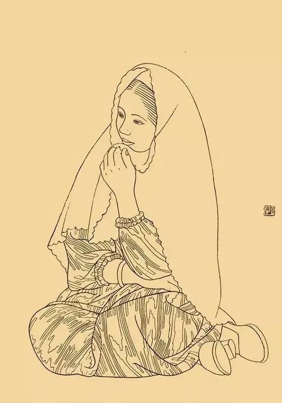 人物画白描作品欣赏,线条之美在不同民族有不同的美