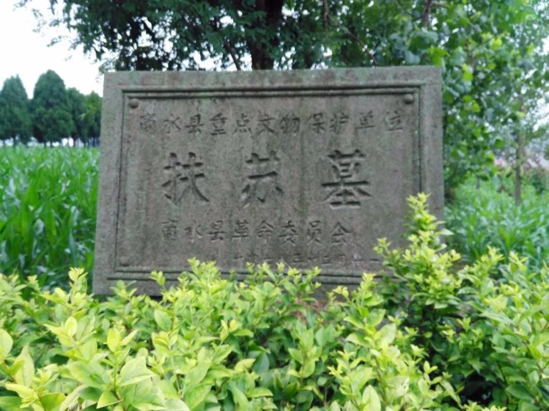 在商水县舒庄乡的扶苏村,有一座大型的扶苏墓,在附近名气很大。这座墓冢是圆形的,直径大约有五米,外头被水泥围墙包围,墓冢前立着一块石碑,墓碑的南侧,是一座四米多高的塑像,这座墓葬就是传说中的扶苏墓。