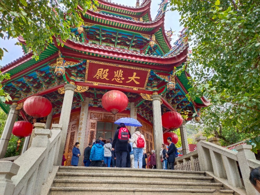 大悲殿供奉四面观音,正面是双臂观音,其他三个方位是四十八臂千手千眼观音。大慈大悲,普度众生!
