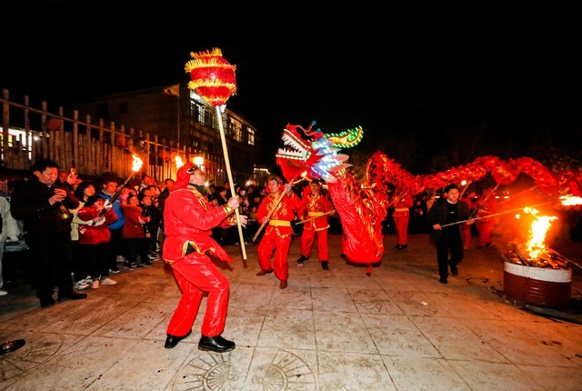 龙灯舞动,气氛如火如荼