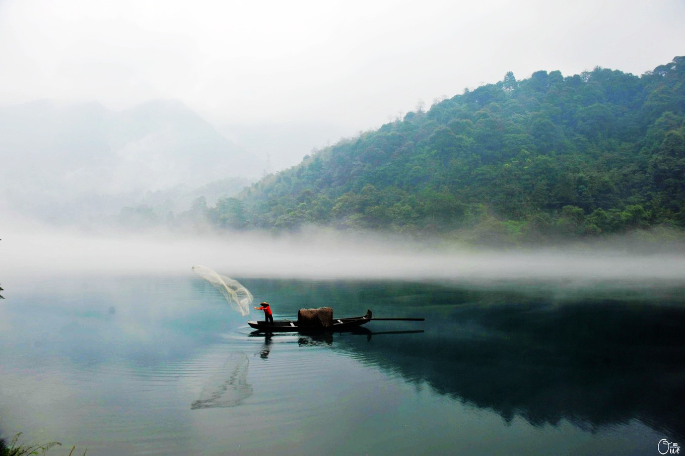 雾中的小东江,笼罩在一片迷离的烟雾中,书上说,仙人通常能够腾云驾雾,如果你泛一叶轻舟在云雾小东江中穿行,就会觉得飘飘欲仙了。