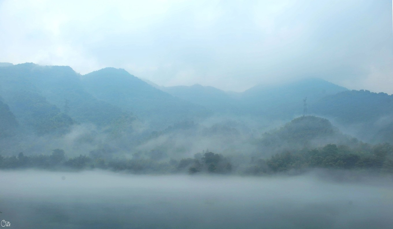 早晨是比效有感觉,拍摄像山水画一样.水雾大到了7点多点..起风了...雾都吹散了一点