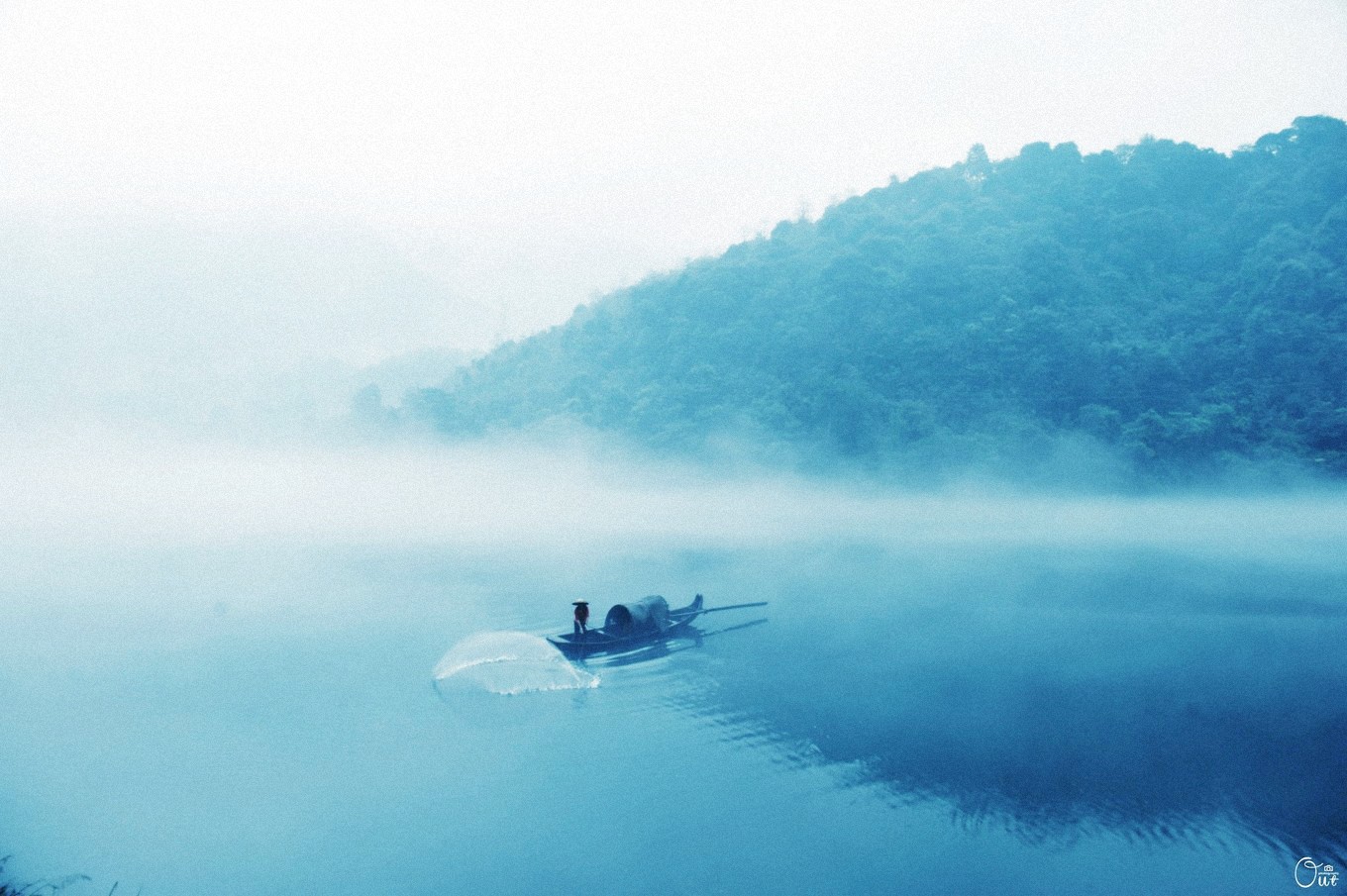 下着小雨拍摄的人也不多.因为假日前所以船家撒了三两网就没有撒了.一直在游!