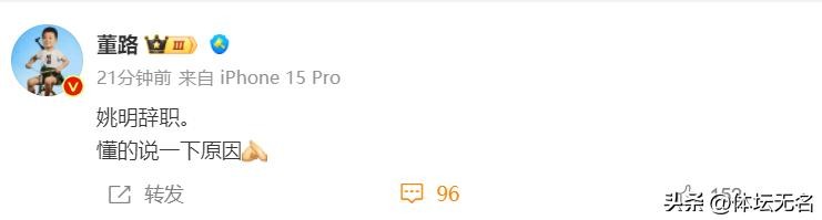 外界都比较好奇姚明为什么这个时候辞职?他的任期到2027年才到期,还有接近3年时间,知名足球解说员董路也在线询问网友,“姚明辞职,懂的人说一下原因”。
