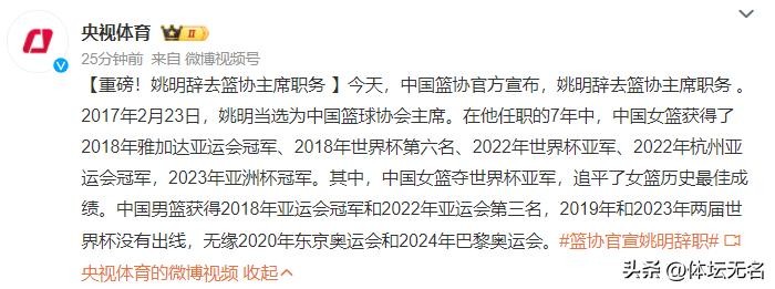 大反转!辟谣短短24小时,姚明官宣卸任!亲自说出原因,非常心酸