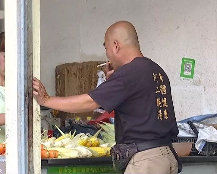 在市场,有的顾客手夹香烟,有的顾客则嘴里叼着香烟,不时来上两口。