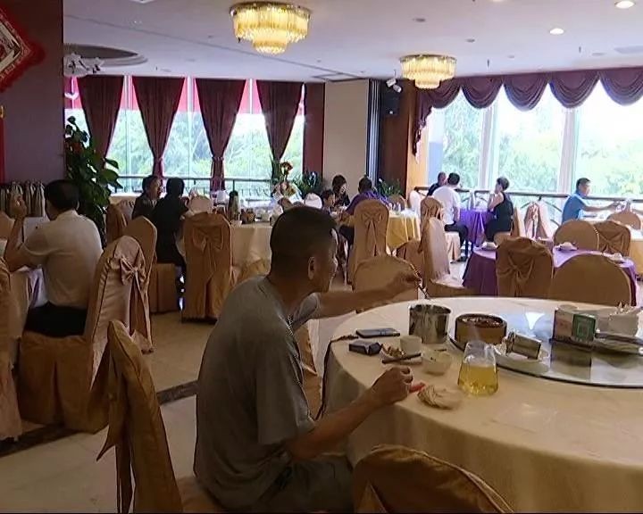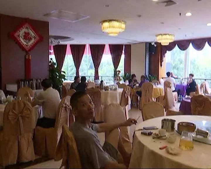 在该酒店三楼的鑫龙酒家内,记者发现一名顾客一只脚搭在椅子上,一只手夹着香烟。