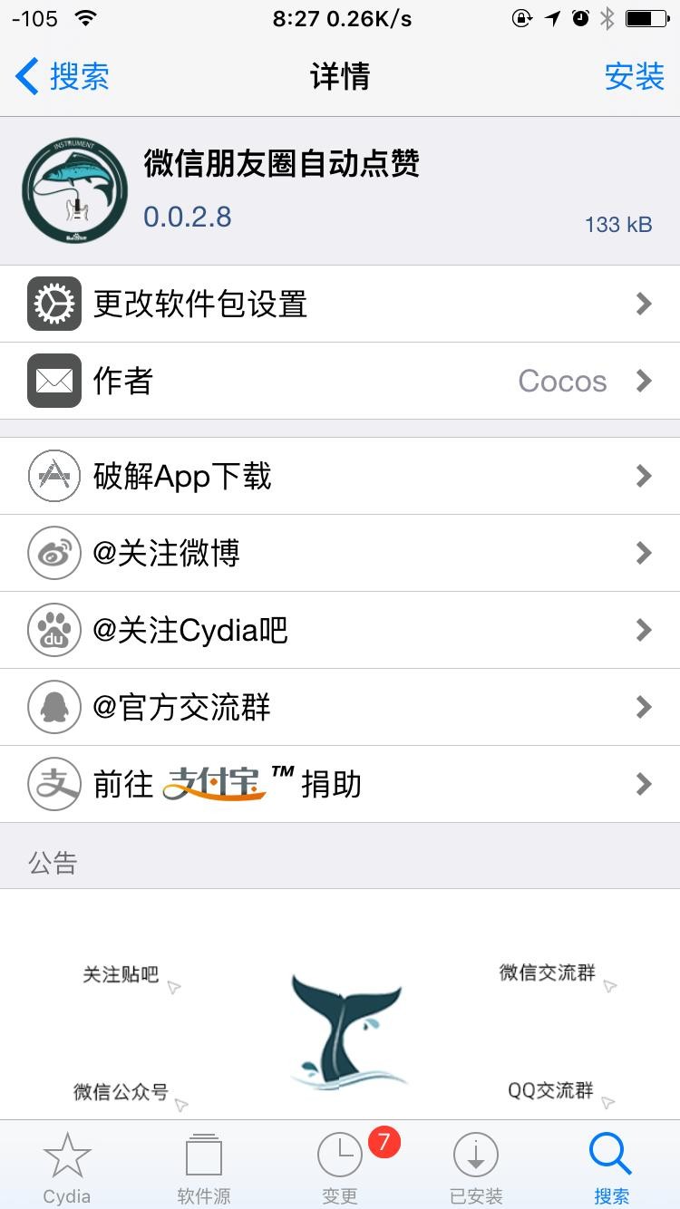 添加好软件源后,在Cydia商店里搜索“自动点赞”,会跳出对应的插件(插件来自Cydia贴吧源),如下图
