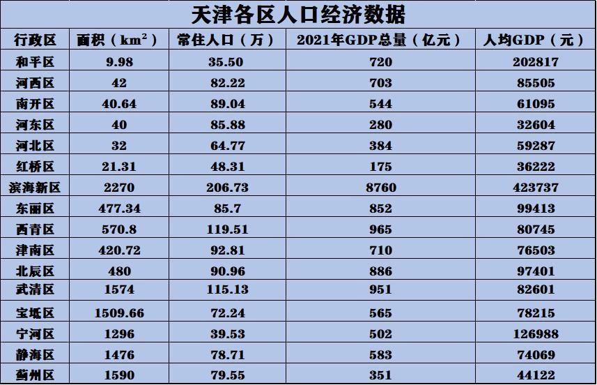 天津各区人口经济数据