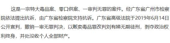 最终,广东省高级法院撤销一审无罪判决,判处刘有娣无期徒刑,剥夺政治权利终身,并处没收个人全部财产。也许是巧合,6月14日当天,刘有娣的毒品上家陈永谦案也移送检察机关审查起诉了,涉案毒品数量达到了22.8公斤。