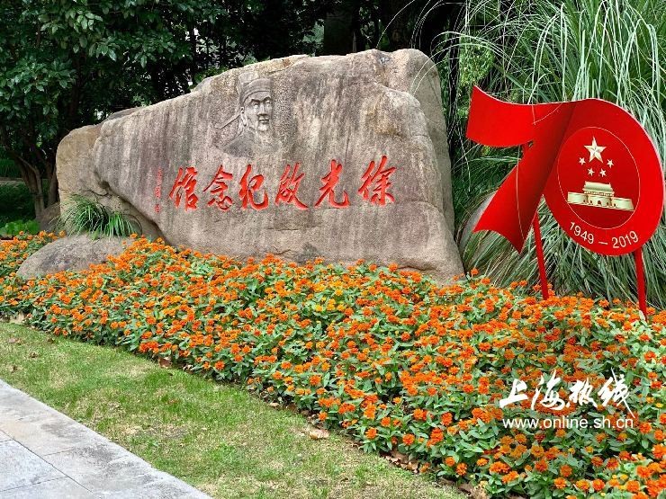 侧边是公园的侧门,倒是要比正门醒目壮观。入口处摆放着一块石头 ,上面镌刻着徐光启的画像以及“徐光启纪念馆”五个大字。