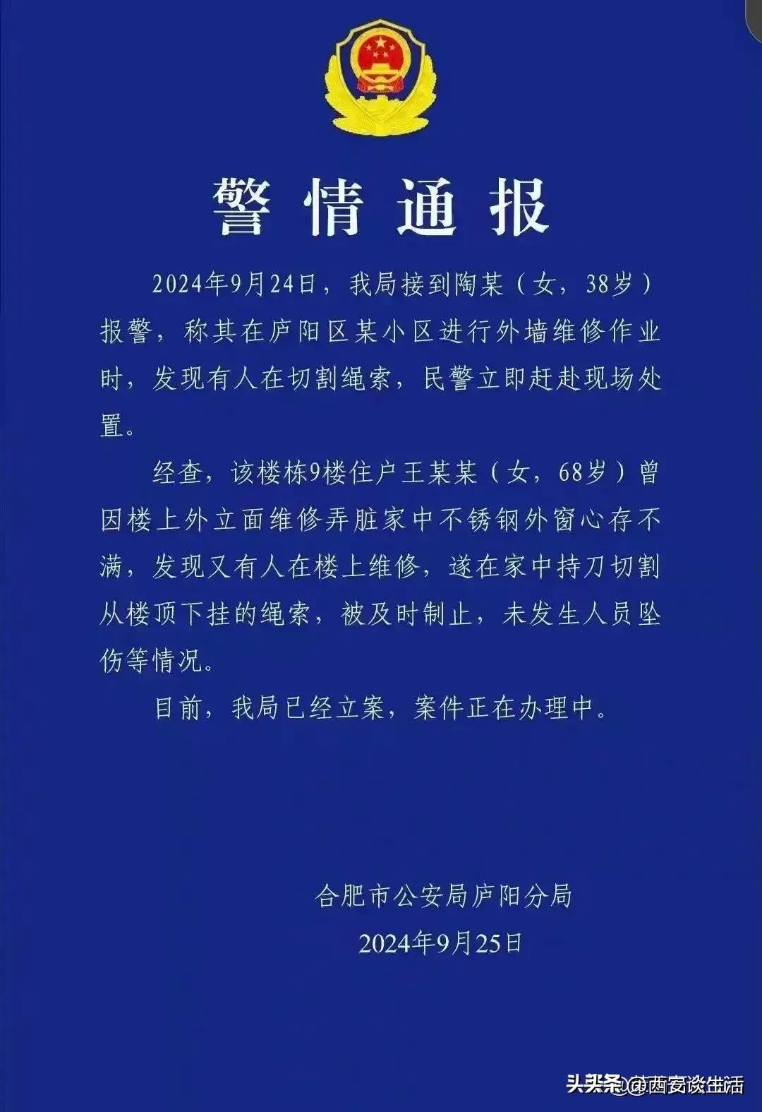 女子高空作业遭割绳新后续:警方通报,割绳老人68岁,真相曝光