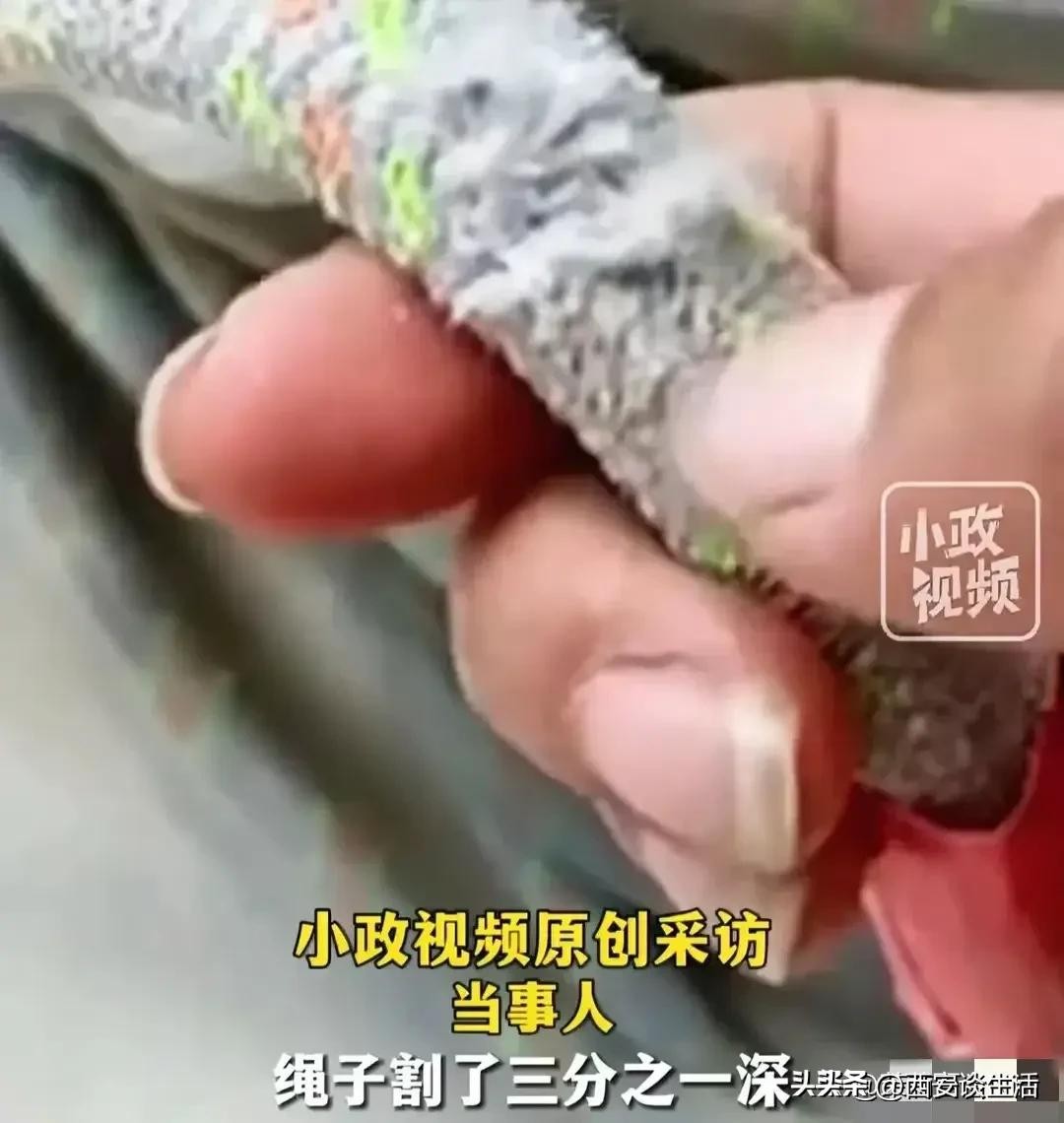 安全绳,是高空作业人员的生命线,一旦断裂,后果不堪设想,陶女士不敢相信自己的眼睛,更不敢相信,一位年迈的老人,会做出如此令人胆寒的举动