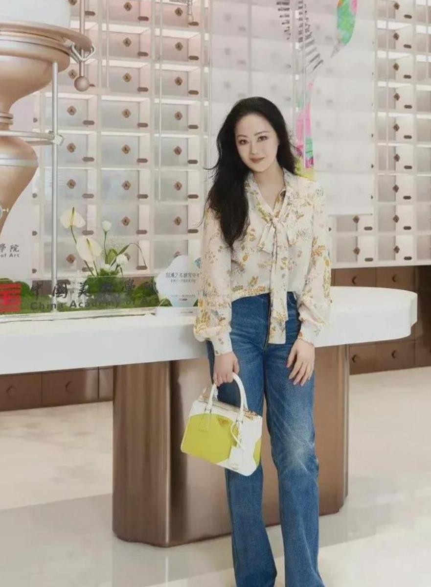 下身,她选择了一条牛仔微喇裤,这种简约却经典的设计恰到好处地平衡了整体造型。牛仔裤既凸显了她修长的腿部线条,又增添了一丝随性与洒脱。它不张扬,却又能够完美地与华丽的衬衫形成对比,使得整个造型更具层次感。正是这一上繁下简的搭配理念,让章小蕙展现出了她独特而优雅的一面,同时又保持着时尚界所推崇的和谐统一之美,让每个人都为之倾倒。
