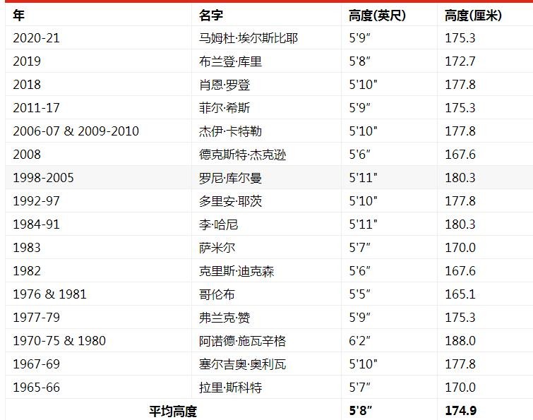 以下是历届奥林匹亚先生冠军名单及其身高: